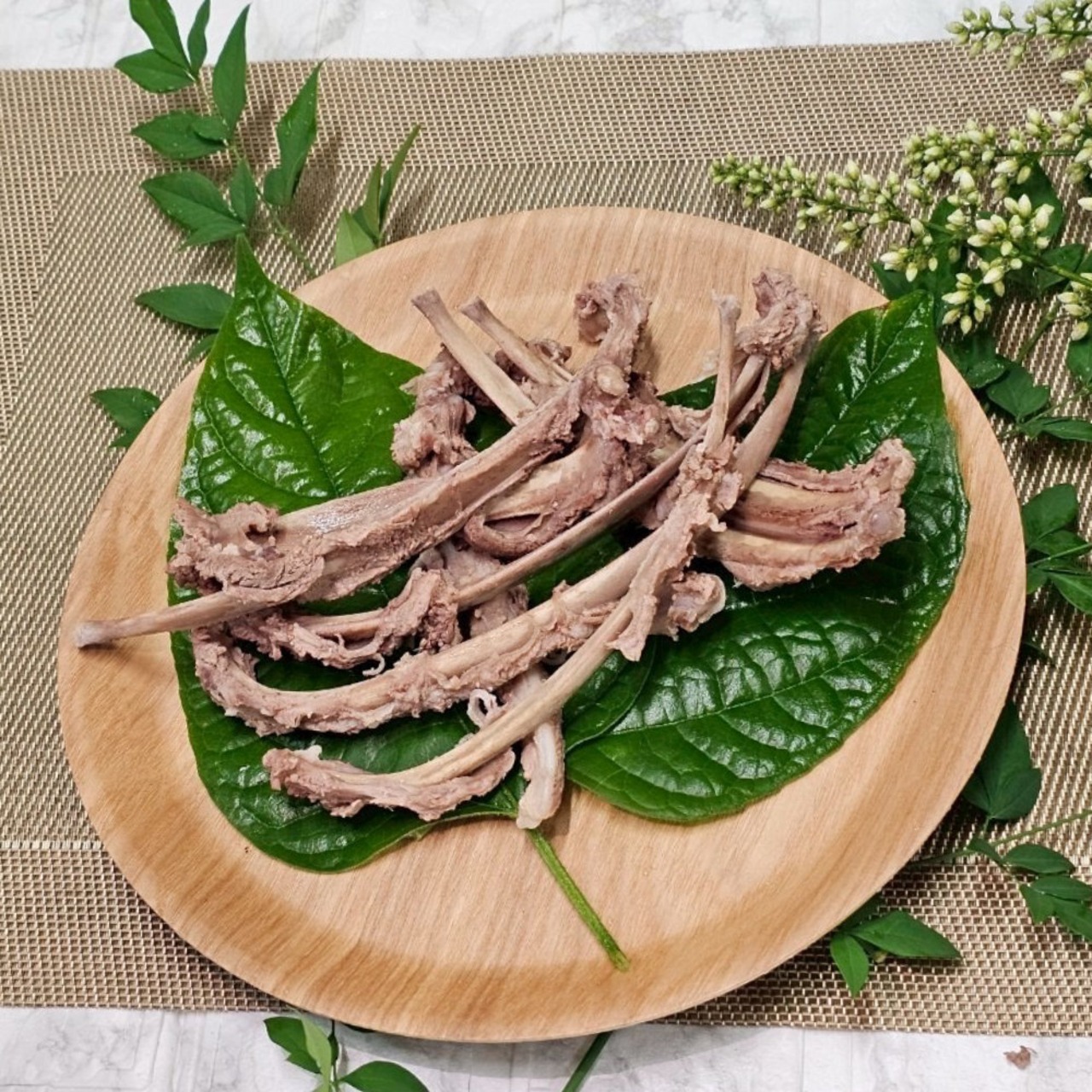 東三河渥美半島で獲れたイノシシのあばらの骨を茹でて真空冷凍しました。